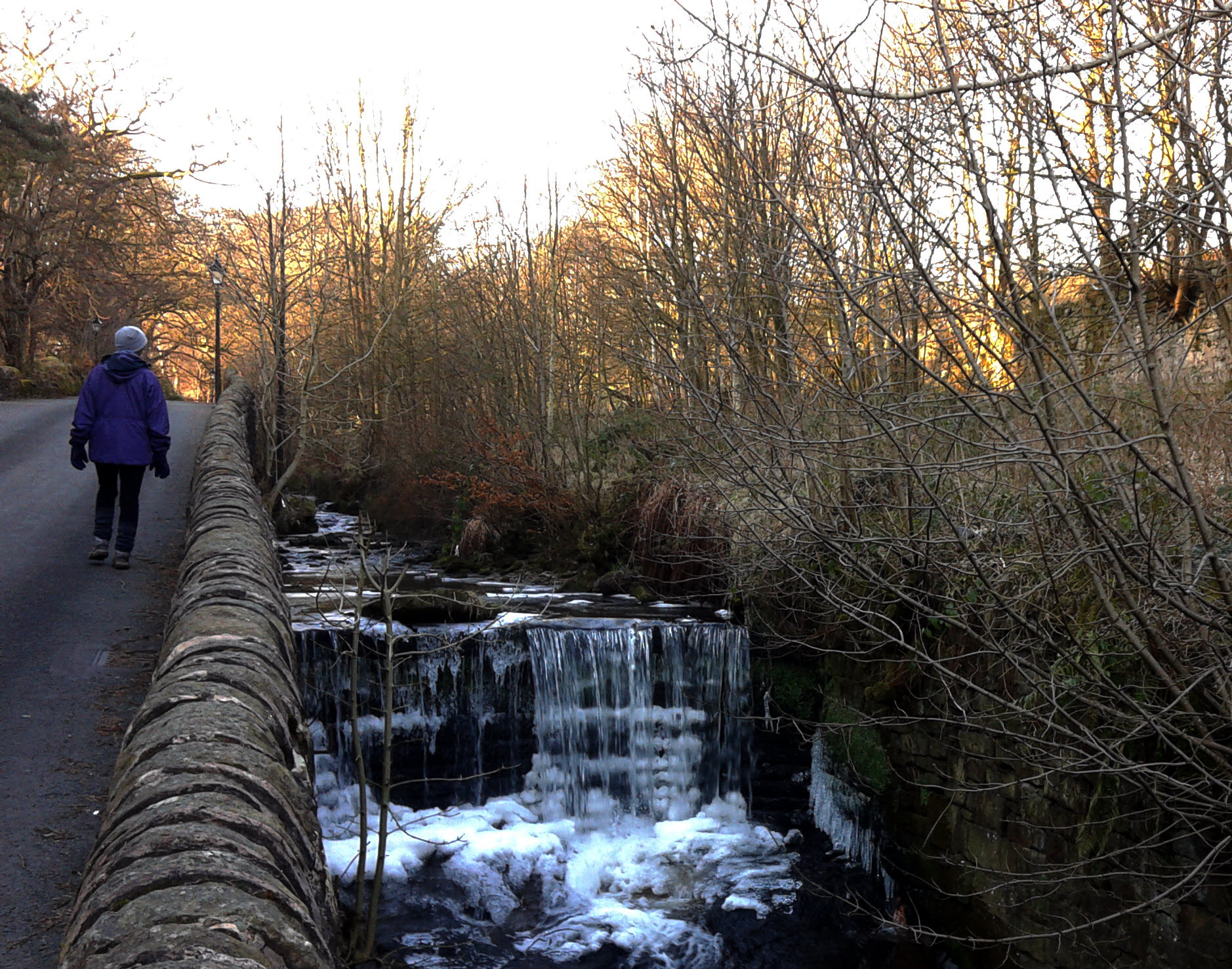The river at the back of our house is beginning to freeze, here it is a mile up the road in Barrowbridge.