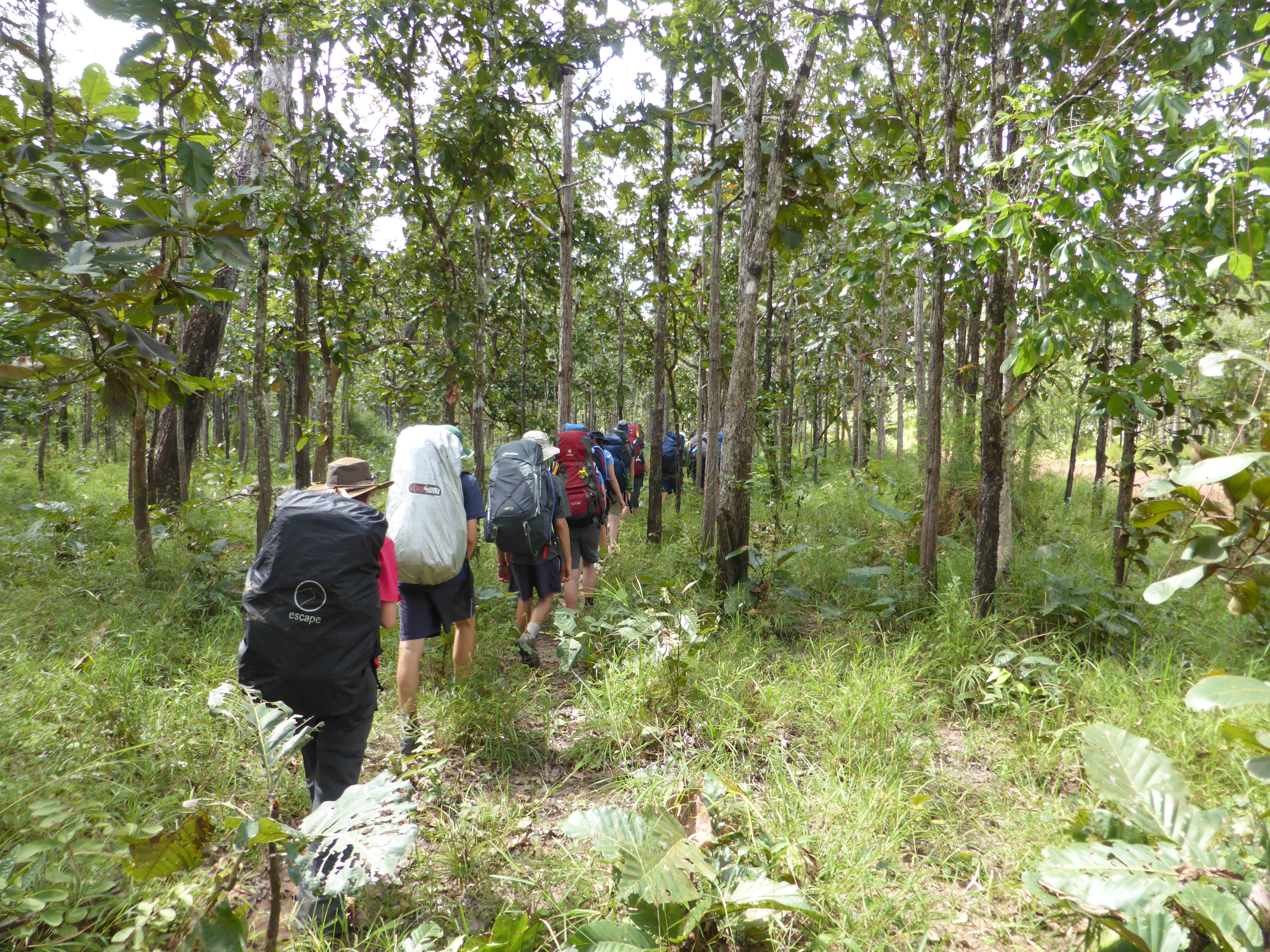 I was trekking with a World Challenge team from Perth Australia, this being an acclimatisation trip preparing for another longer trek in the Cambodian jungle a couple of weeks later. After all their jungle training, excitement built when we left the farmland and entered the bamboo forest. Our local guide looked like he was on his first trip, making sure we stuck to the right track through what was pretty difficult vegetation, holding his GPS in the air trying to pick up signals.
