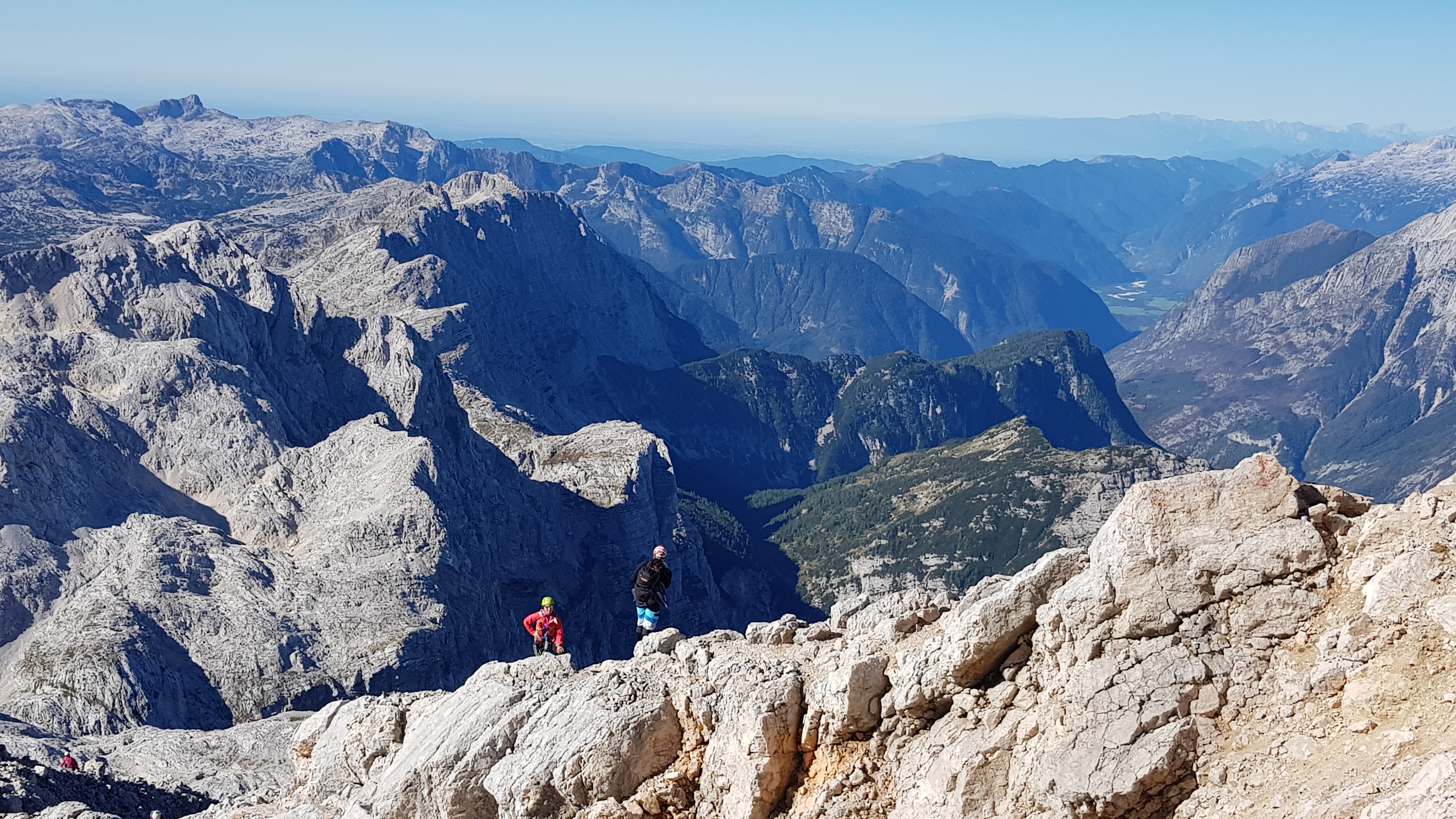 That was a 10 hour day, taking us from the Triglavski Dom to the summit and back down to the Aljazev Dom; 350m of ascent and 1,900m of descent, tough climbing down across the north face of Triglav. But not everyday one climbs the highest peak in Slovenia and the Julian Alps.